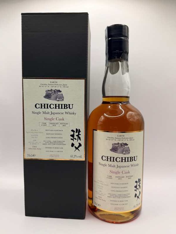 This Chichibu is a Single Cask – number #11037 – distilled in 2014 and bottled in 2022, made from English barley of the Concerto variety and water from the Ochi River. This whisky is produced thanks to the talent and experience of Ichiro Akuto by indirect steam heating; the washback is made of Mizunara wood; mashing is by hand, and fermentation is long; distillation takes place in a Forsyth pot still with a descending neck; the cask used for maturation has previously contained Imperial Stout beer.