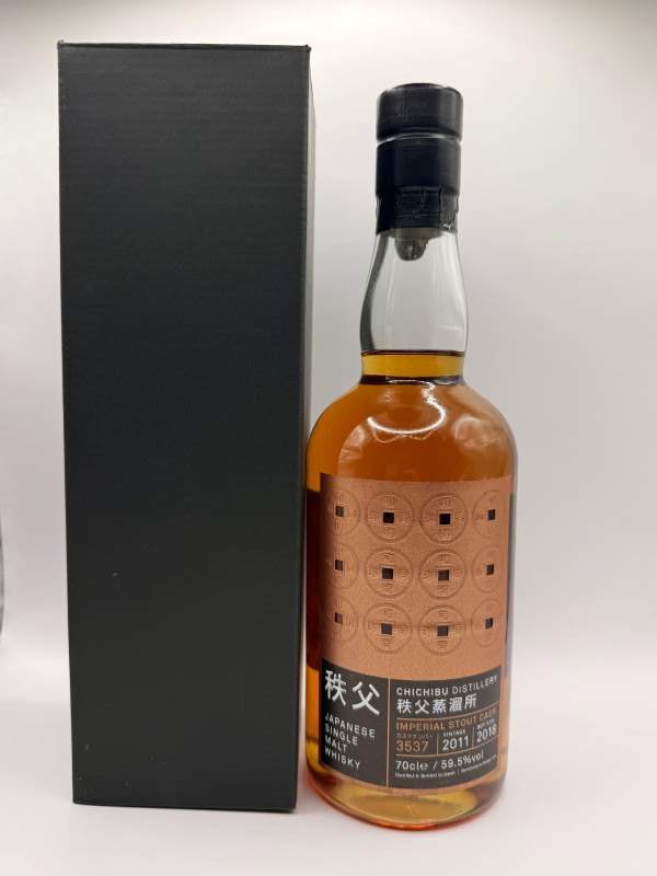Chichibu imperial stout cask 3537 – Imperial Stout Cask est un whisky single malt distillé en 2011 et mis en bouteille en 2018. Vieilli en fût d’Imperial Stout, il présente un profil distinctif et un titre alcoométrique de 59,5 % vol. Car cette édition limitée, produite à seulement 239 bouteilles, ravira les collectionneurs. Donc issu de la distillerie Chichibu, ce whisky reflète l’engagement de la distillerie envers la qualité. Ceci grâce à des procédés de fabrication manuels. Il est associé à Venture Whisky, la société à l’origine de la célèbre marque Ichiro’s Malt.