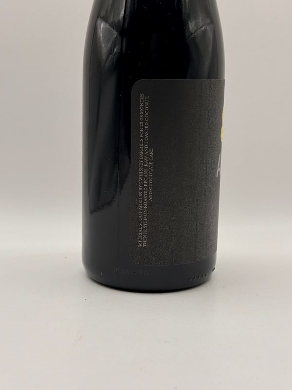 Imperial Stout vieilli 21 mois dans des fûts de bourbon Heaven Hill de 10 ans. Dimensional Anny imperial stout aged 2025 est ensuite reposé ou accompagné de noix de pécan grillées. Aussi de noix de coco grillée et de gâteau au chocolat.