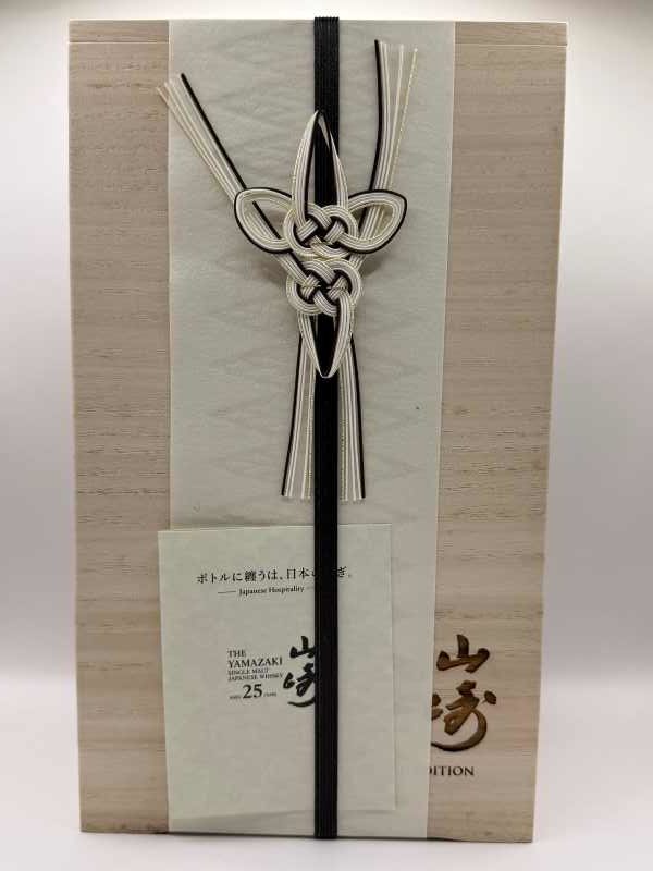Cette édition limitée de 25 ans d’âge célèbre l’hospitalité japonaise. La bouteille est décorée d’un « Mizuhiki » à cinq cordons, symbolisant l’union des mains et des cœurs de celui qui offre et de celui qui reçoit. Le coffret en bois de paulownia est également décoré de papier Washi traditionnel, représentant les forêts de bambous de Yamazaki. Yamazaki limited edition 25 years old 100th